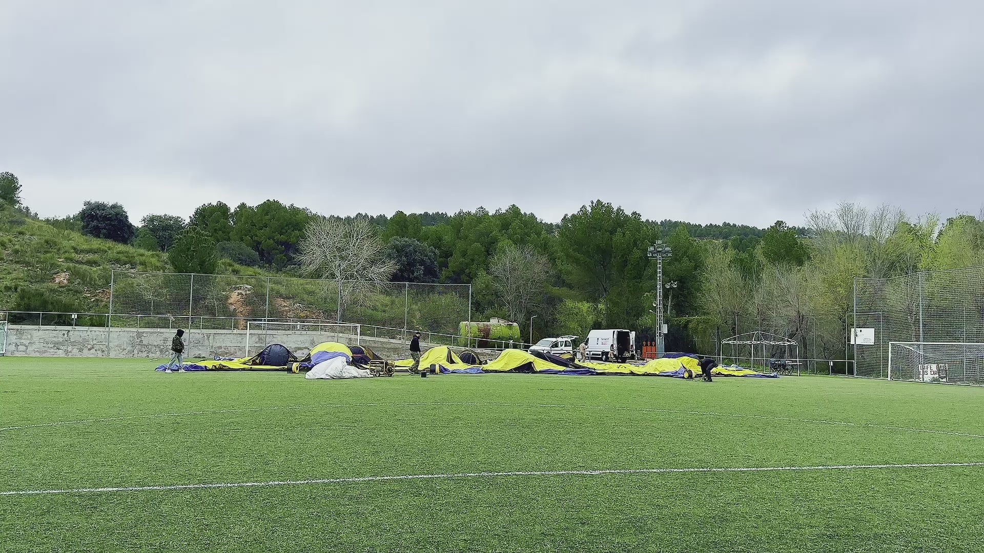 Antes de empezar a levantar la estructura, se deben de atar los vientos a varios puntos de anclaje para la completa seguridad de la carpa.